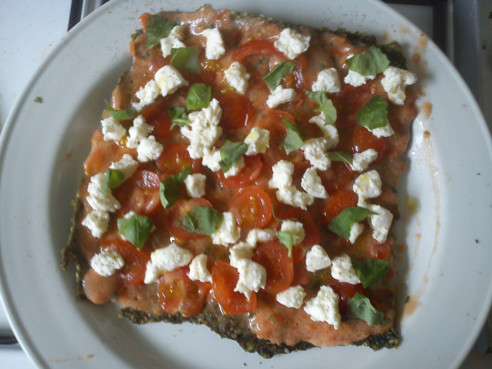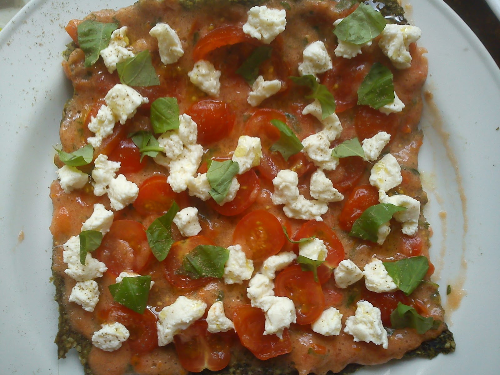 Then i decided to make a raw pizza with these little beauties. For the base I sprouted some sunflower, pumpkin an sesame seeds, added in some almond pulp and some vegetable pulp from my juices. I dehydrated it for 1 hour at the highest setting and overnight at 95/100 C.